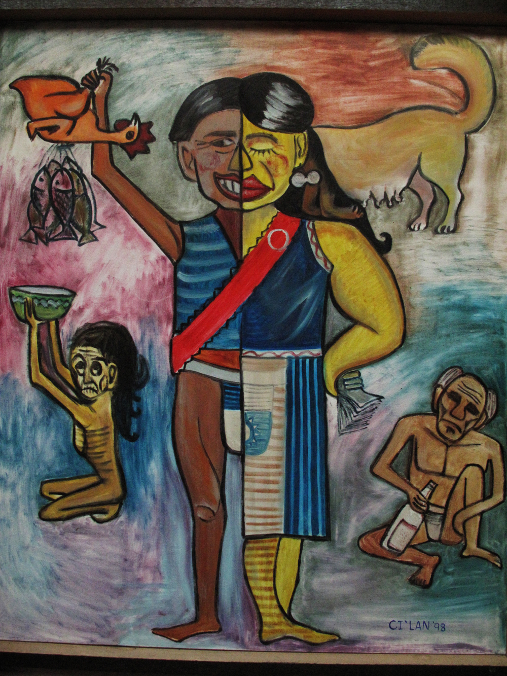 我早期多以部落裡的房子與人物作為創作的題材,用以紀念稍縱即逝的、甚至是不復記憶的部落一景;同時也是對祖先取之自然、用之於生活的智慧的禮讚。