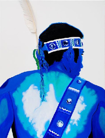 台灣是個環海的島國,靠海的東岸海線阿美族族群,多以打漁為主體活動,即所謂的靠海吃海!因此打漁的技能對阿美族男子來說是極為重要的! 這幅以背部肌肉為畫布,表現海洋藍色漸層的美感畫作,很具有冷光前衛的視覺張力!此外以真羽毛坎入畫布與主題巧妙結合的手法,很引人側目,是張極具原創性的作品!